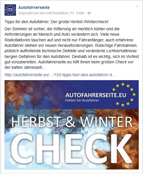 Quelle: AUTOFAHRERSEITE.EUDie Tage werden kürzer und die kalte Jahreszeit naht. Um sich gewissenhaft auf die Automobilen Herausforderungen von Herbst und Winter einzustellen, haben wir für Sie den "AUTOFAHRERSEITE.EU - Herbst- & Winter-Check“ zusammengestellt …